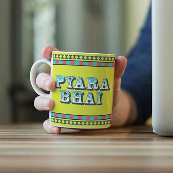 Show your love for your brother with this Pyaara Bhai printed ceramic mug. Perfect for daily coffee or tea, it’s a heartfelt and thoughtful gift that reminds him how much he means to you.